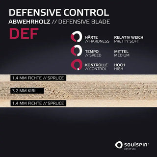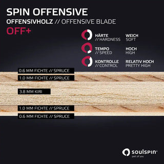 Hi, I purchased spin offensive new area blade. Control both offensively and defensively is fantastic. I can attack and defend based on my touch which is fantastic. Paired with chinese blue sponge on forehead and butterfly dignics 09c on backhand you will love it