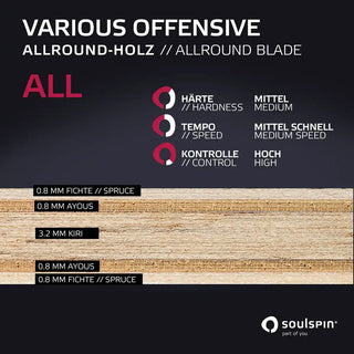 Die offiziellen Bewertungen mancher Hölzer weichen von meinem Empfinden ab. Das, ist aber ok, da es ohnehin subjektiv ist. Deshalb sollte man den super guten Service von soulspin in Anspruch nehmen und die interessanten Hölzer selbst testen.