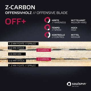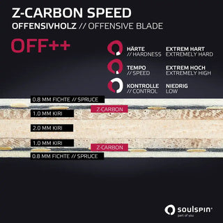 I requested Soulspin for a 78-80 grams blade. They informed me about an interesting blade which they reserved for me - so, I purchased the Z-carbon speed (actual weight 77 grams). I'm used to play with the Walnut speed. But, found the whole blade with max. rubbers (NUZN55) a little bit to heavy (even with the 2.0 versions). Which is totally different when using the purchased Z-carbon speed. Enough power and still experiencing great control and feel. For a player like me (using lots of wrist manoeuvrability and motion), it is a perfect combo. Hitting shots with heavy spins and great kicks from all distances and angles. My fellow club members could feel immediately the differences.