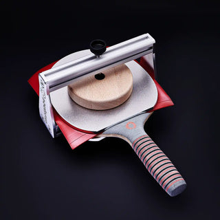 With our rubber press, glueing your rubbers is child's play. Anyone can do it.