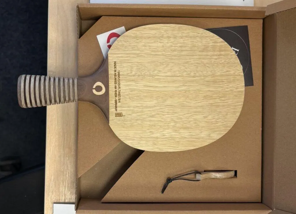 "WITH A NORMAL GRIP, THE IMPULSE TOWARDS THE HANDLES END IS SLIGHTLY WEAKENED . BUT THIS DOES NOT HAVE TO BE A DISADVANTAGE. ON THE CONTRARY, EACH PLAYER HAS TO FIND OUT FOR HIMSELF WHAT SUITS HIM BETTER: A VERY DIRECT TRANSMISSION OF THE HIT OR A SLIGHTLY WEAKER BUT ALSO CALMER BALL FEEDBACK. "
